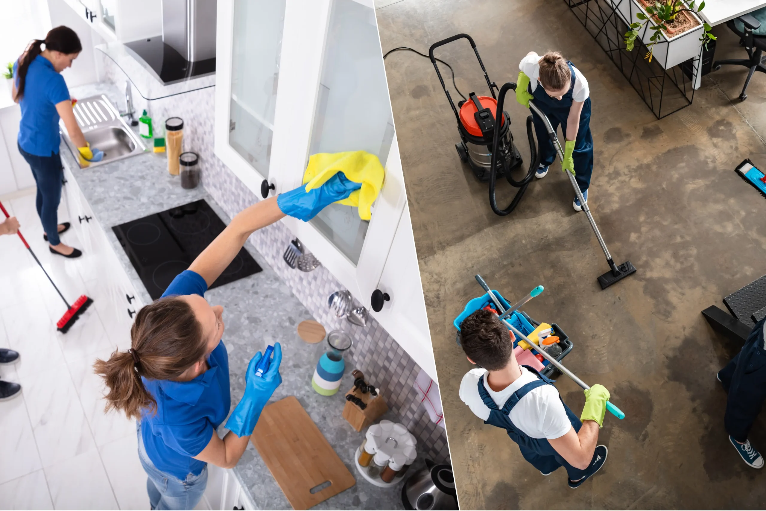 • Kitchen Deep Cleaning: Removing grease, stains, and buildup from countertops, cabinets, and appliances.